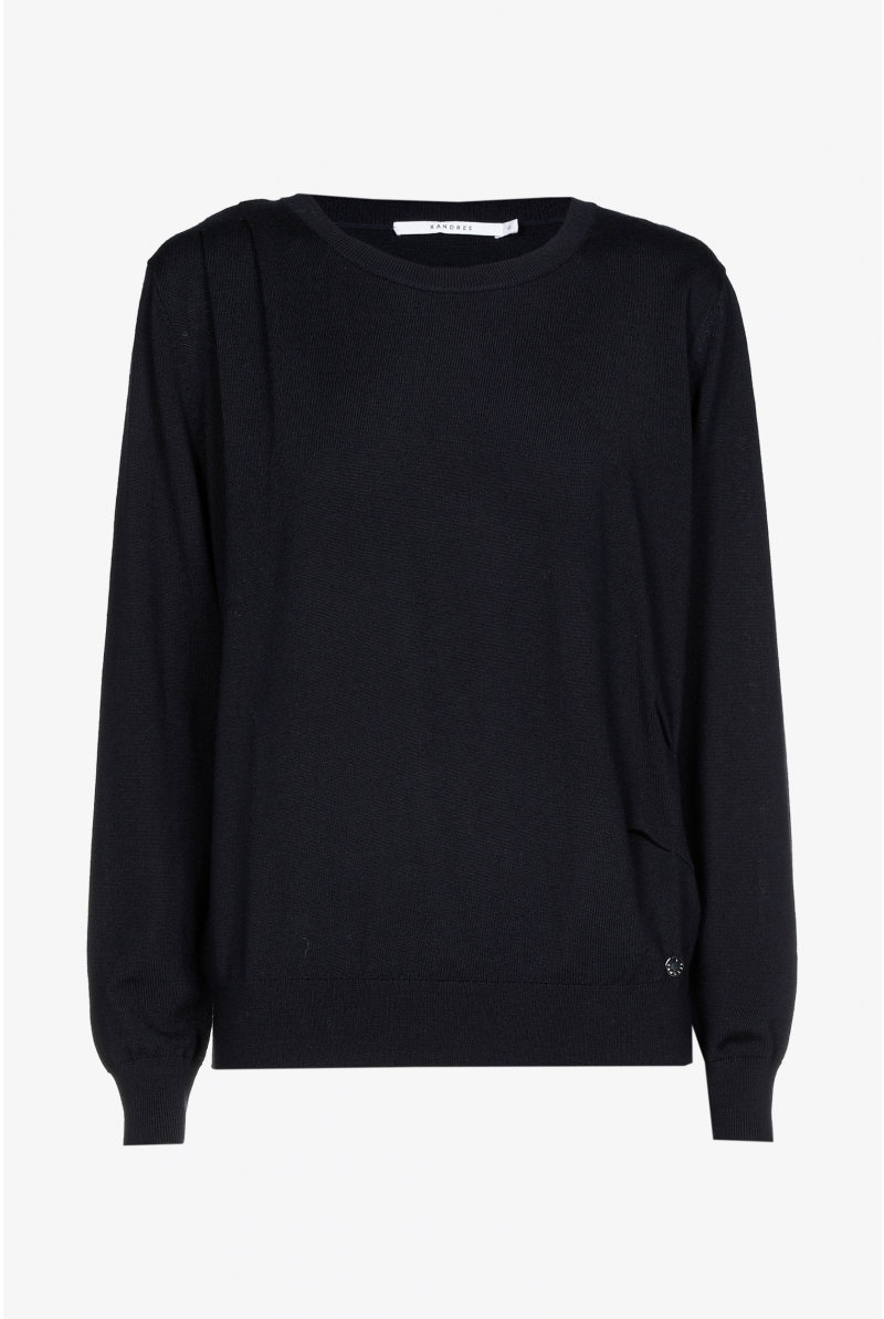 XANDRES Dames Kleding Wollen Trui Met Detailplooien | Navy